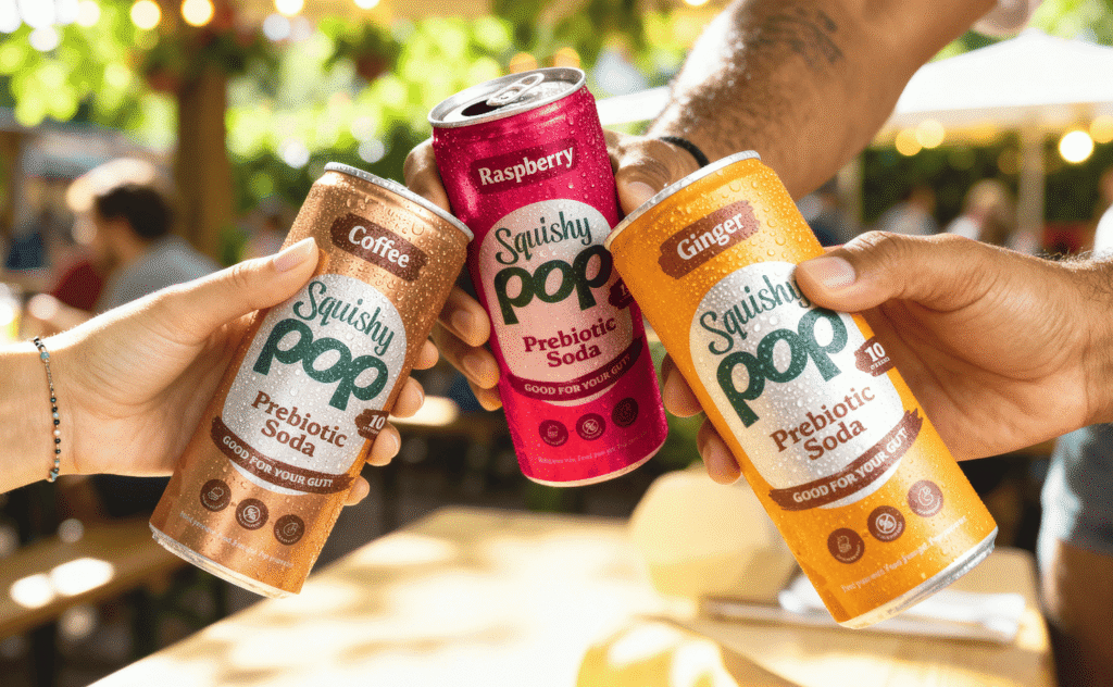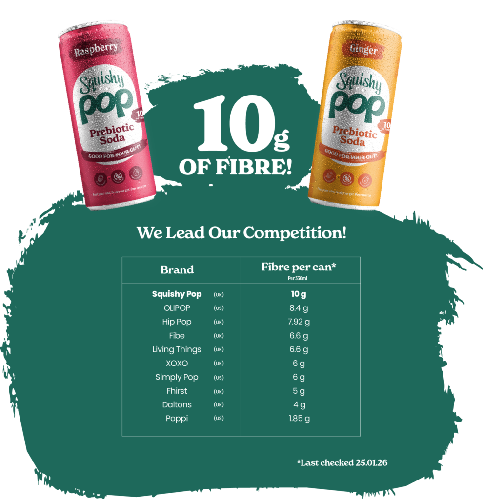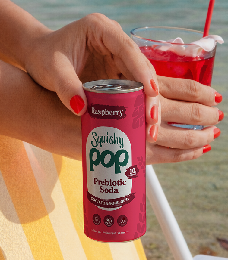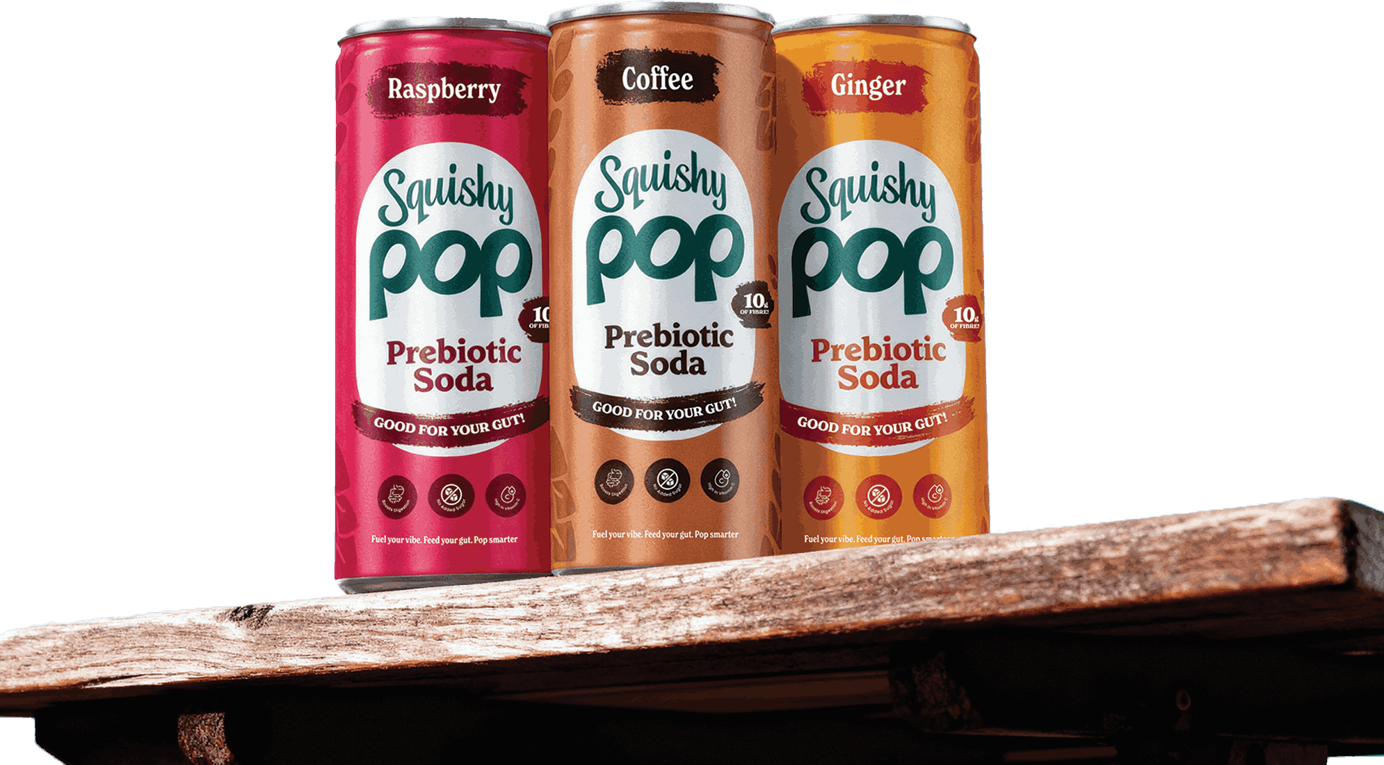 The prebiotic soda that tastes good and does good. Squishy Pop isn’t your average fizzy drink, It’s brewed with barley malt, powered by chicory root inulin, and packed with real prebiotic fibre to help your gut do what it does best. No added sugar. No empty fizz. Just a refreshing hit of bubbles with purpose.
